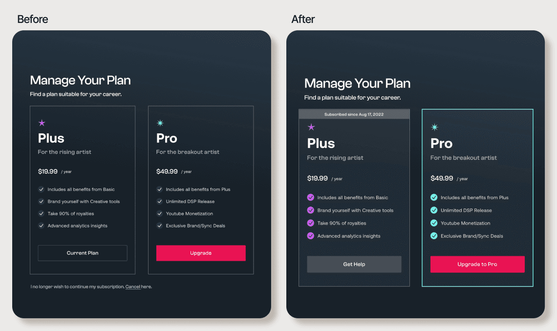 We were gearing up for a beta launch with three plans—Basic, Plus, and Pro—when the team floated a familiar growth tactic: hide downgrade/cancel to reduce churn. But as a small startup, churn isn’t just loss—it’s data. Cancellation is one of the clearest moments to learn what’s broken, what’s missing, and what users truly value. So the goal wasn’t to block exits. It was to give users real control while building trust—designing a plan-change flow that feels generous and honest, captures feedback, and still encourages retention the right way.